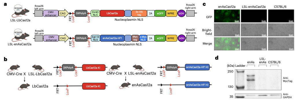 03/20/2025: Congrats to Kaiyuan Tang, Liqun Zhou, Matthew Dong, Xiaoyu Zhou and colleagues for their paper in Nature Biomedical Engineering, describing Cas12a-knock-in mice for multiplexed genome editing, disease modelling and immune-cell engineering!