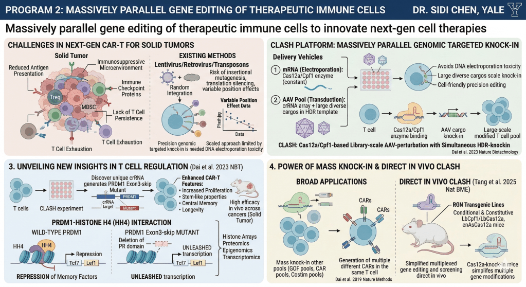 This series of work develop massively parallel gene editing tools and apply them in immune cells to innovate next-generation cell therapies.